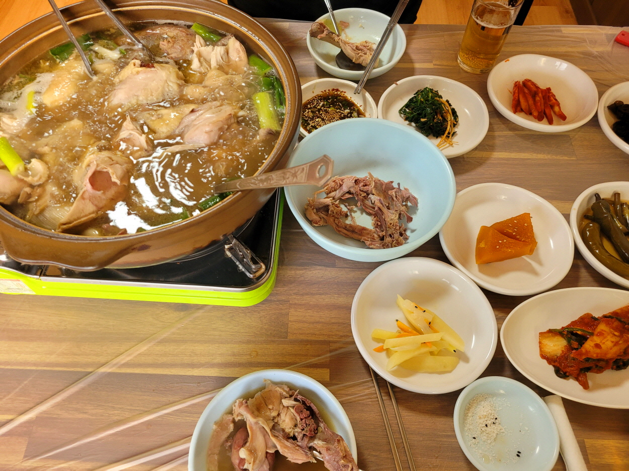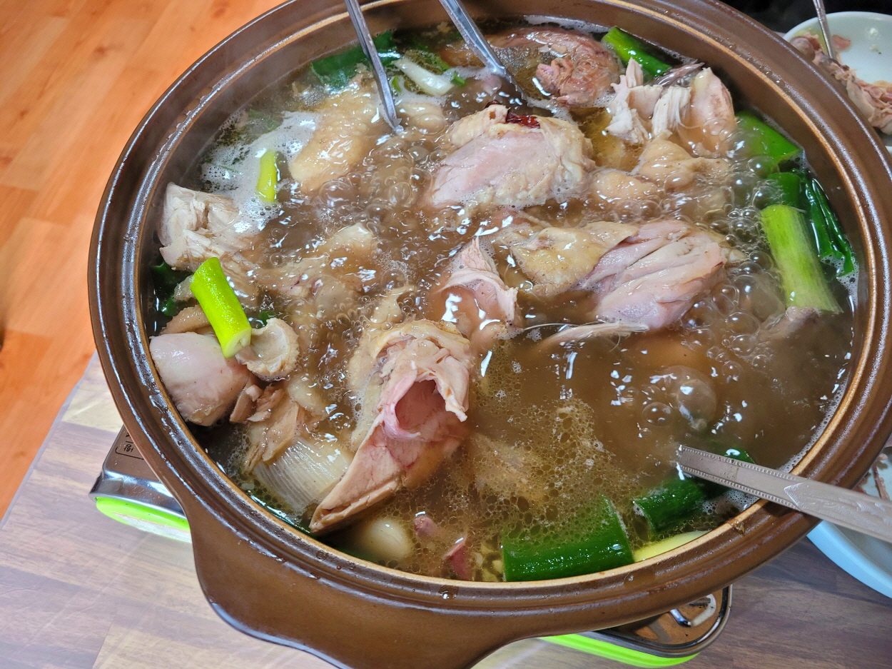 우리는 한방백숙을 주문했었는데 토종닭이 얼마나 큰지 오리보다 더 큰 것 같았다.